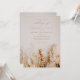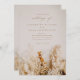A romantic, modern photo realistic fall wedding invitation featuring a neutral dried floral bouquet in wheat, ochre and rust tones.