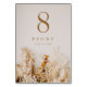 A romantic, modern photo realistic fall wedding table card featuring a neutral dried floral bouquet in wheat, ochre and rust tones.