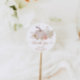 The sticker is made on wonderful paper and had no problem sticking to the bag that I purchased to put it on. I wanted to find a design that would be cute for the bride and groom and this one fit the bill as it has cute "bees" buzzing around and the wedding was taking place in a town called "Bee Cave". The packaging was great and protected the stickers. The website is easy to navigate and there are so many color choices. I had no problem finding a color that the bride was using on everything else selected. The design was adorable and there were many to choose from. You can make the figure as larger or smaller and you can place the photo and writting whereever you want to in the sticker. The printing is fabulous..better than expected.