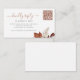 Modern rustic watercolor autumn fall botanical foliage and dried leaves kindly reply budget affordable white mini size RSVP card enclosure with QR code and a trendy handwriting calligraphy script in an earthy terracotta beige colour palette.