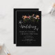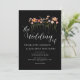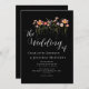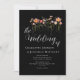 The design showcases delicate wildflowers in burnt orange, terracotta, golden yellow, coral, peach, purple, pink, and rich umber across a stylish black background, evoking the beauty and warmth of the fall season. Elegant crisp white script paired with clean modern typography adds a refined touch, while the watercolor florals create a whimsical, romantic feel.