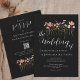 Boho Fall Wildflower black and white Wedding QR code Invitation with Autumn Watercolor Flowers