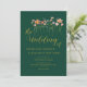 Boho Fall Wildflower Wedding Invitation with RSVP QR Code in Dark Emerald Green, gold, Rust & Terracotta