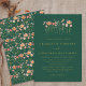 Beautiful dark emerald green and gold wedding invitation with bohemian autumn florals