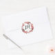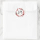 Boho Feather Burgundy Rose Wreath Monogram Wedding Classic Round Sticker
