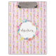 Cute bohemian clipboard featuring watercolor native tribal boho feather and beads pattern and your own name in the middle of the feather and bead wreath. Name on case currently reads Mayara. A pretty beads and feather repeat pattern decorative case on a light pink background colour. Background colour can also be changed if required. Ideal for a free spirited native boho girl. © Original watercolor feather and bead art and design by Sarah Trett. www.sarahtrett.com for www.mylittleeden.com