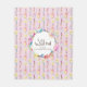 Watercolor native tribal boho feather and beads wreath personalised girls blanket. Personalise with your own name and name meaning on the front of the blanket and enjoy the pretty beads and feather repeat pattern. Currently reads Willow Freedom. A flexible, graceful beauty. Pretty decorative art on a pink background colour which can be changed if required. Ideal for a free spirited girl. © Original watercolor feather and bead art and design by Sarah Trett. www.sarahtrett.com for www.mylittleeden.com