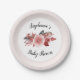 Boho Feathers Burgundy Blush Baby Shower Paper Plate