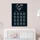 A chic and modern 16-Table wedding seating chart. Boho heart creates a lovely top border. Neutral blush feathers provide the structure for the heart. Small pink, blue and red flowers give it texture and a romantic vibe. A stripe is carved out of the heart to create space for the wedding couple's names. The text is a soft blush neutral, which looks wonderful against the deep navy blue - almost black - background. A companion print creates the bottom border. This Boho seating chart is part of the Spiced Blush collection. In addition to seating charts and other signs, you'll also find menus, place cards, table number cards. Just what you need to create a personalised wedding ceremony or reception. You should see a link to it on this page. If you don't or need help with an item, please contact me.