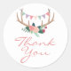 Boho Floral Antlers & Shabby Roses Party Thank You Classic Round Sticker