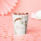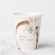Bohemian Floral Arch, paper cups. Boho style watercolor flowers, pampas grass and delicate green foliage with beige and terracotta orange arch shapes.