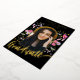 Celebrate your daughter’s college university or high school graduation with this stunning Modern Gold Foil Script Calligraphy graduate Photo arch graduation party invitation. Designed by artist Catherine Sweetman, this card features elegant gold foil calligraphy and a whimsical watercolor wildflowers in pink, purple, yellow annd lilac hues anround an elegant arch, capturing the spirit of the occasion. The front showcases your daughter’s name and graduation details in stylish gold Foil script on a black background, while the back provides space for additional information in modern stylish typography. With an easy-to-use photo template, you can personalise the card with a cherished photo of your graduate. This unique, original design is the perfect way to commemorate her achievement and share the joy with friends and family.