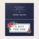 Navy blue gift card for your hair salon, nail salon, or for a makeup artist, lash artist, or similar. The gift certificate is in navy blue with bohemian flower bouquets in orange, coral red, and hot pink. Add your contact info on the back of the gift certificate. Inside you can write a disclaimer or restrictions of the gift card.