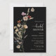 Boho Floral Bridal Shower Invitation. This stylish & elegant bridal shower invitation features gorgeous hand-painted watercolor wildflowers arranged as a lovely bouquet and elegant calligraphy script that's perfect for spring, summer, or fall weddings. Find matching items in the Moody Black Boho Wildflower Wedding Collection.