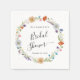 Boho-inspired bridal shower napkins featuring a watercolor wreath of floral wildflowers and "Bridal Shower" in an elegant swash script.