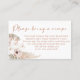 Floral themed bring a recipe insert for a bridal shower featuring a boho floral arrangement with blush color flowers, white orchards, palm leaf and pampas grass. This design also features a faux rose gold calligraphy heading.