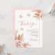 Modern butterfly kisses and baby wishes baby shower thank you card featuring a bohemian style dry floral arrangements with pampas grass and blush colored text. The design also features three faux rose gold glitter butterflies.