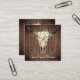 Boho Floral Cow Skull on Barnwood Background Square Business Card