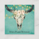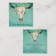 Boho Floral Cow Skull, String Lights on Turquoise Square Business Card