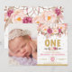 Boho Floral Dream Catcher 1st Birthday Girl Photo Invitation