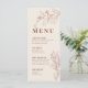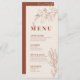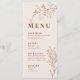This menu is chraacterised by boho style, floral artwork, neutral earthy, and beige colours, with a mix of different font styles, often in different sizes, to create a unique, eclectic look that makes these menus a natural aesthetic.