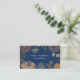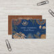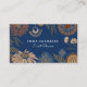 Modern whimsical floral boho dark blue event planner business cards with earthy brown and green floral elements and leaves. A faux leather brown textured background on the back of the card. Add your contact information and social media to the back of the card, on a contrasting black background that makes the earthy colours pop.