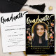 Celebrate your daughter’s college graduation with this stunning Modern Gold Foil Script Calligraphy graduate Photo arch graduation party invitation. Designed by artist Catherine Sweetman, this card features elegant gold foil calligraphy and a whimsical watercolor wildflower arch, capturing the spirit of the occasion. The front showcases your daughter’s name and graduation details in stylish gold Foil script on a black background, while the back provides space for additional information in modern stylish typography. With an easy-to-use photo template, you can personalise the card with a cherished photo of your graduate. This unique, original design is the perfect way to commemorate her achievement and share the joy with friends and family.