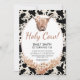 Sweet holy cow themed birthday invitation in a bohemian style featuring a blush and natural tones boho floral arrangement, cowhide pattern and a highland cow. This boho floral cow birthday invitation is ideal for a girls 16th, 12st or 30th birthday.