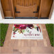 This trendy doormat features pretty watercolor flowers in vibrant shades of marsala, wine, deep green, red, and purple, and matching modern typography.