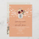 Invite guests to your elegant country affair with our Rustic Chic Boho Floral Peach Wedding Invitation. Adorned with a personalised monogram, beautiful burgundy watercolor flowers in mason jars, delicate string lights, and trendy calligraphy script, it sets the tone for your special day. Perfect for couples seeking a blend of rustic charm and sophisticated elegance.