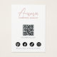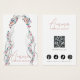 This jewellery display card presents a boho-inspired illustration with long, wavy hair in black and white, accented by colorful pastel flowers, blending simplicity with a touch of elegance. It includes precise spots for displaying earrings on her ears. Customizable features such as your name, website, slogan, and social media icons, alongside a QR code, are available for a tailored brand experience. The card's boho-chic design, paired with its sleek layout, makes it perfectly suited for a handmade jewellery brand.