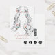This jewellery display card presents a boho-inspired illustration with long, wavy hair in black and white, accented by colorful pastel flowers in her hair, blending simplicity with a touch of bohemian elegance. It includes precise spots for displaying earrings on her ears. Customizable features such as your name, website, slogan, and social media icons, alongside a QR code, are available for a tailored brand experience. The card's boho-chic design, paired with its sleek layout, makes it perfectly suited for a handmade jewellery brand.
