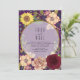 Elegant, modern, bold, boho, botanical, floral burgundy, peach pink, gold and plum purple whimsical wildflowers wedding invitation with trendy calligraphy script.