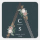 A romantic wedding favour tag featuring beautiful vintage botanicals atop a rose gold structural pyramid on a textural background with couples stacked monogram and wedding date.