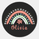 Boho Floral Rainbow With Personalised Name Classic Round Sticker