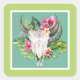 Boho Floral Skull Teal & Green Birthday Party Square Sticker