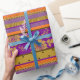 Wrapping paper with boho chic inspired purple & mustard yellow pattern.