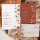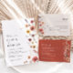 Boho Floral Orange Burnt Terracotta Wildflower Minimalist Wedding Invitation.