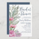 Introducing our boho inspired bridal shower invitation. Featuring original artwork in bold watercolor florals and foliage illustration against a white background with the words 'Bridal Shower' in a hand written style font in dark blue. Easy to customise with your own information.