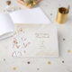This boho wedding guest book features wildflowers on a beige watercolor background. Ideal for an outdoor bohemian summer wedding. Find matching items in Boho Floral Wedding Collection.