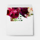 These trendy and beautiful wedding envelopes with your pre-printed return address feature pretty watercolor flowers in vibrant shades of marsala, wine, deep green, red, and purple.