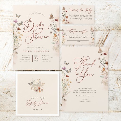 Boho Floral Wildflower Baby Shower Books For Baby Enclosure Card