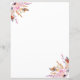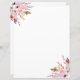 Matching paper sheet, insert for our 3-ring binders. A chic white background with pink florals, roses, sprigs and brown, golden feathers. Summer boho, bohemian style.