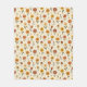 This soft fleece blanket features blooms dancing across a soft, cream background, showcasing a whimsical array of flowers in warm shades of red, orange, and yellow. Each flower is playfully illustrated with distinct shapes, featuring vibrant petals and bold centers, complemented by scattered dots and delicate leaves. The cheerful composition evokes a joyful and inviting atmosphere, perfect for springtime energy.