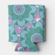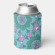 Bold bridal shower can cooler with retro bohemian style floral mandala motif pattern in teal green, aqua blue, and pink violet purple.