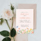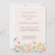 Watercolor wild flowers, leaves, dragonflies in soft watercolor palette of pink, blue yellow and green adorn this romantic and elegant Bridal Shower invitation.