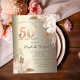 Boho Flowers,Champagne Glass Gold 50th Invitation