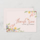 Boho Botanical Garden Wedding Thank You Card. This stylish & elegant wedding thank you card feature Watercolor wild flowers, leaves, dragonflies in soft watercolor palette of pink, blue yellow and green .
