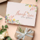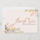 Boho Botanical Garden Wedding Thank You Card. This stylish & elegant wedding thank you card feature Watercolor wild flowers, leaves, dragonflies in soft watercolor palette of pink, blue yellow and green .