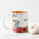 Boho Flowers - Name & Pink Monogram Two-Tone Coffee Mug